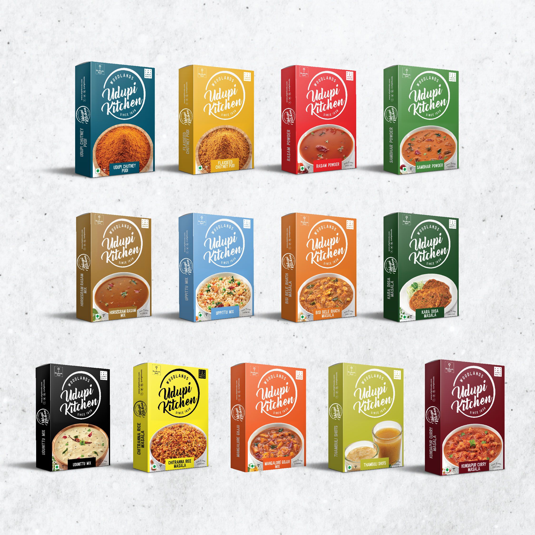 Bisi Bele Bhath + Flaxseed Chutney Pudi + Uppittu Mix + Horsegram Rasam Mix + Udunittu Mix + Udupi Chutney Pudi + Sambhar Powder + Kundapur Curry Masala + Kara Dosa Masala + Mangalore Gojju Mix + Thambuli Shots + Rasam Powder + Chitranna Rice Masala