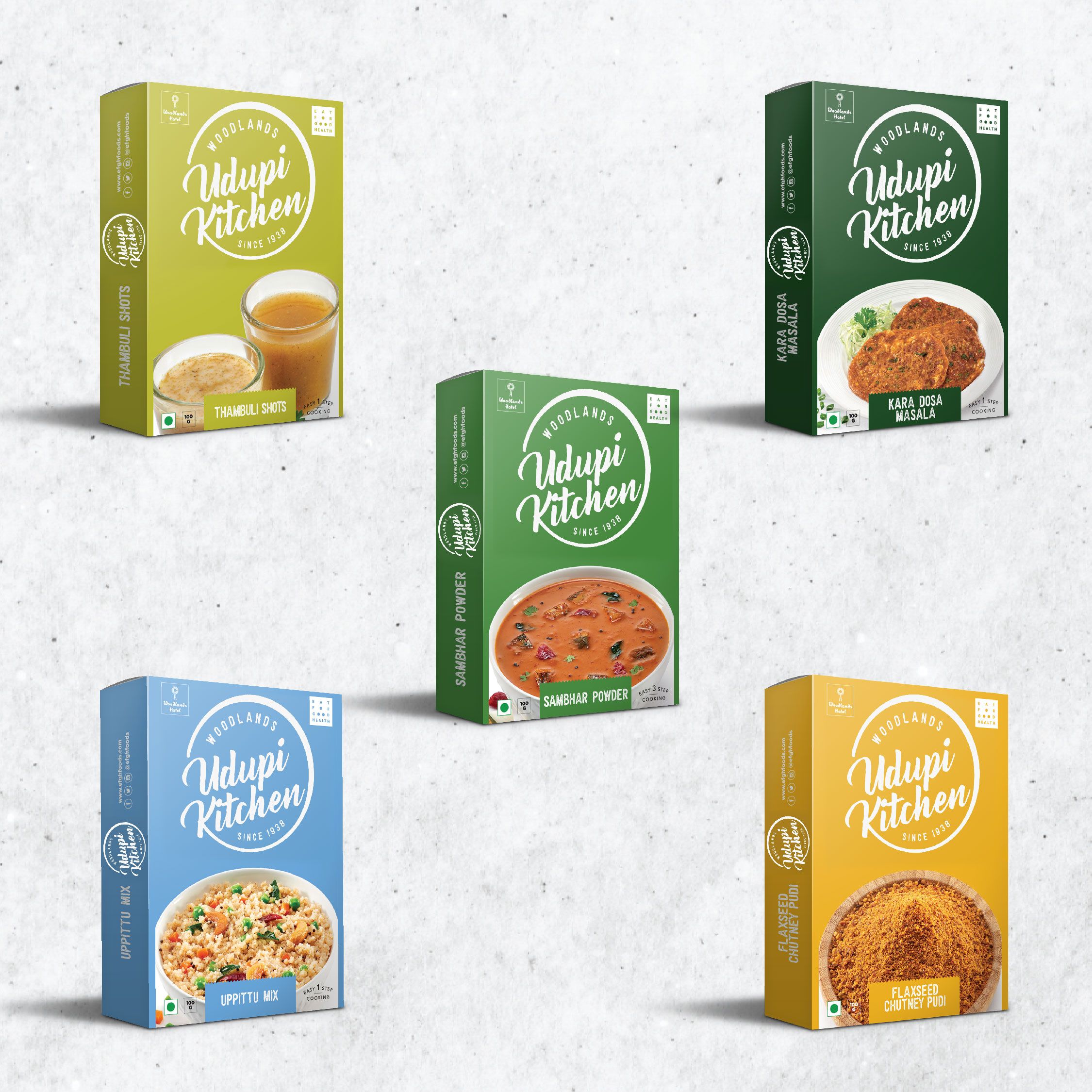 Sambhar Powder + Flaxseed Chutney Pudi + Uppittu Mix + Kara Dosa Masala + Thambuli Shots